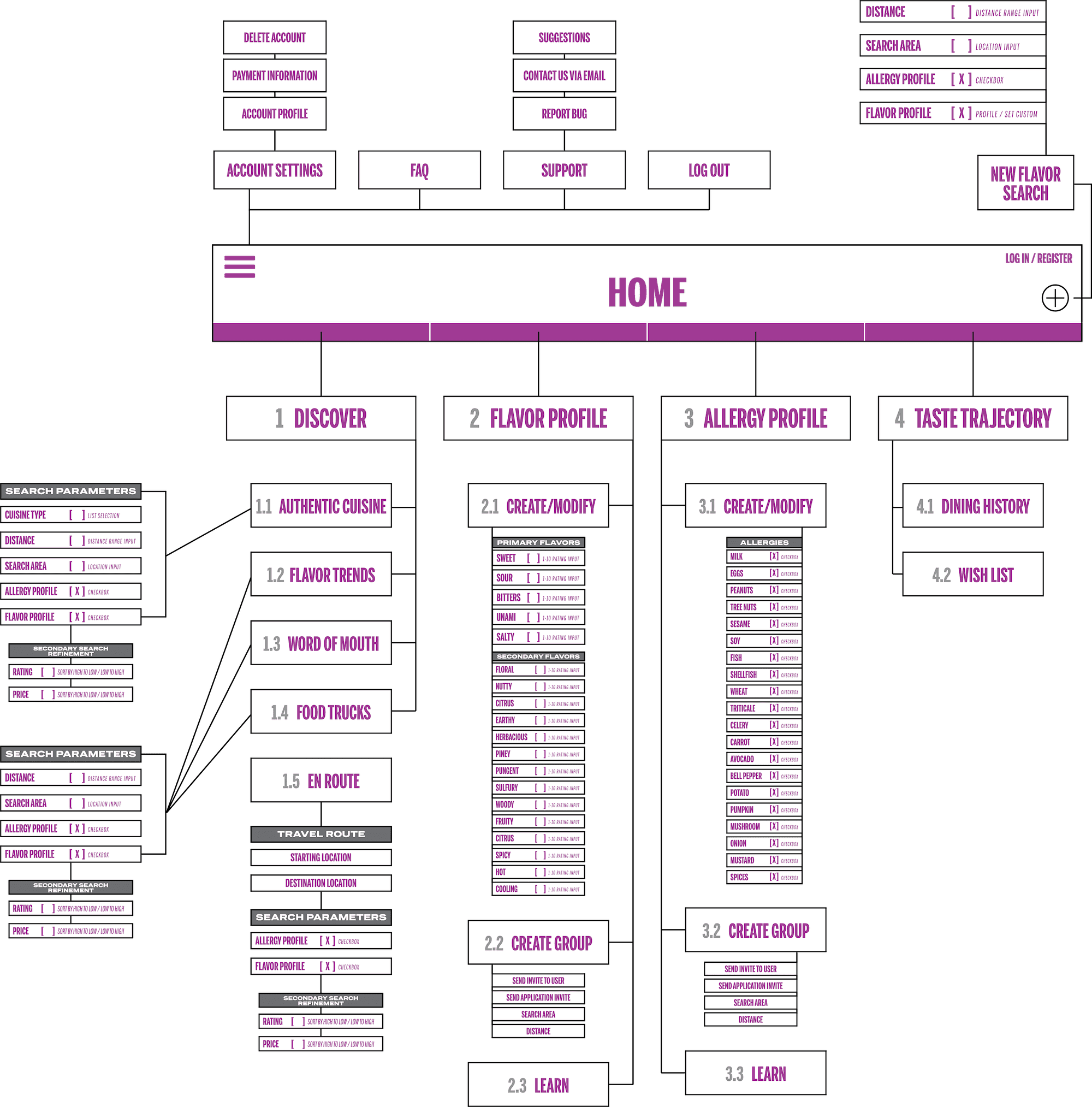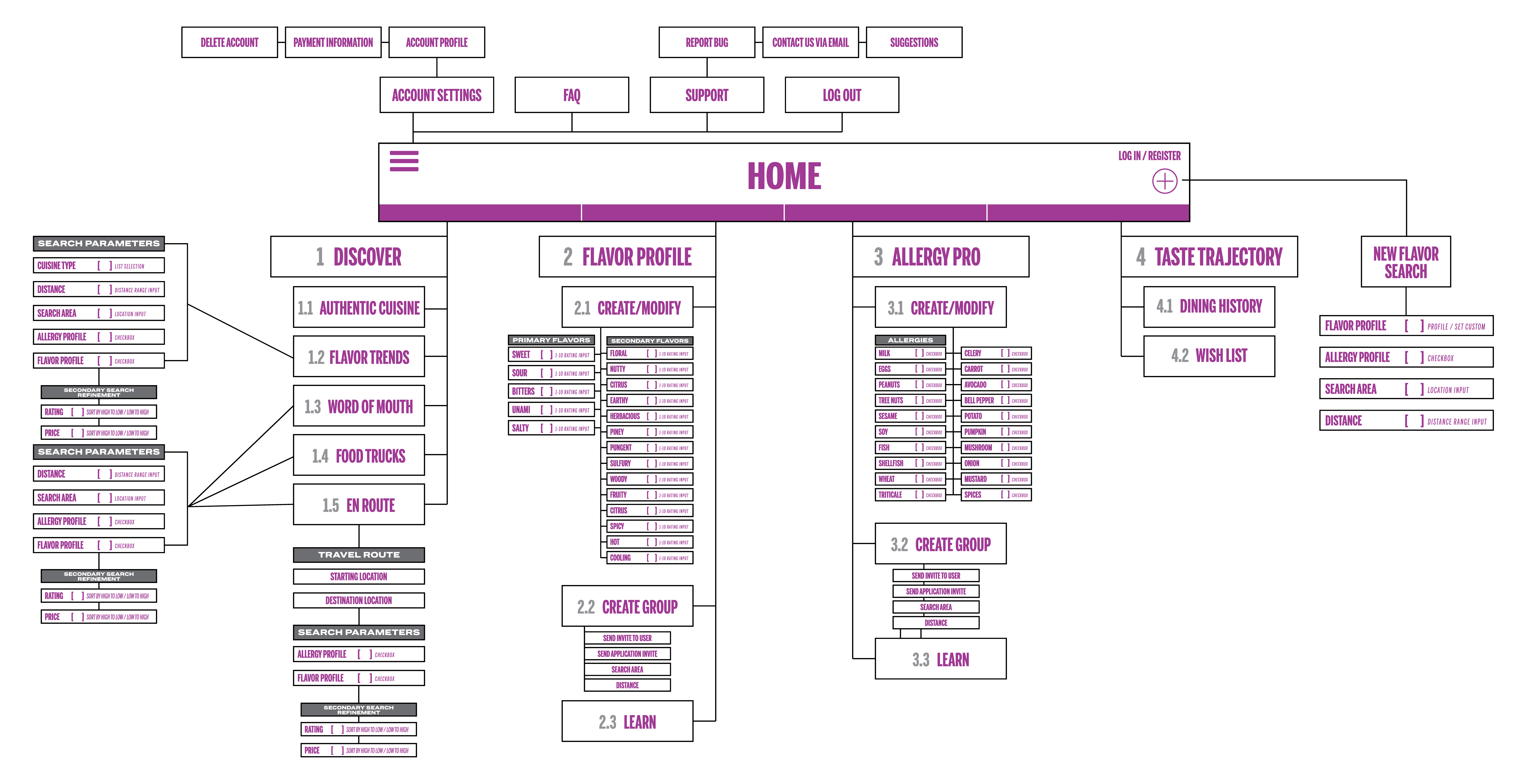 Developing the Flavor Flux app solved the root problem of the restaurant discovery process by enabling users to identify restaurants with the flavors they craved and any potential food allergies users might have, without having to carefully analyze the menus of each dining option. By creating flavor and allergy profiling, all search queries were automatically filtered based on these preferences, providing targeted, user-centered suggestions that significantly reduced the effects of choice overload.