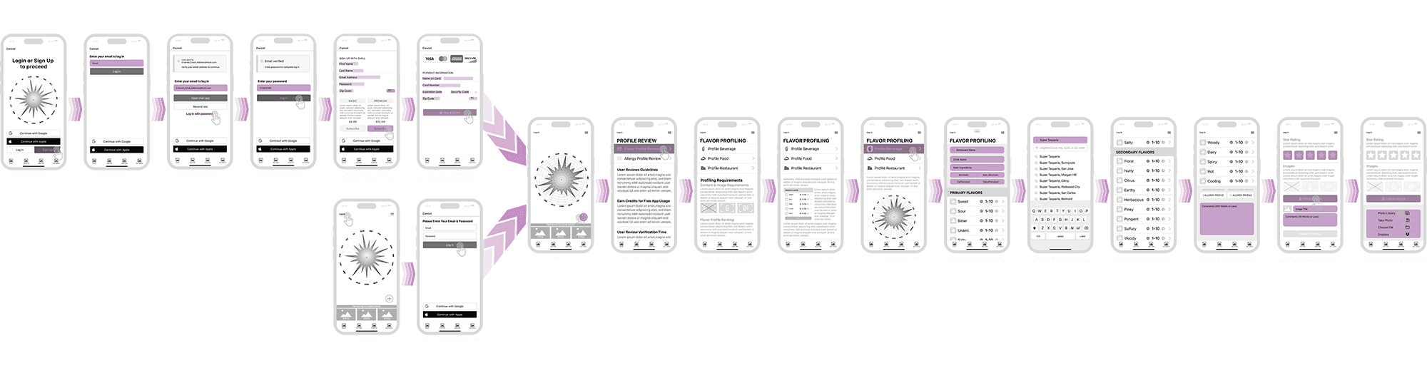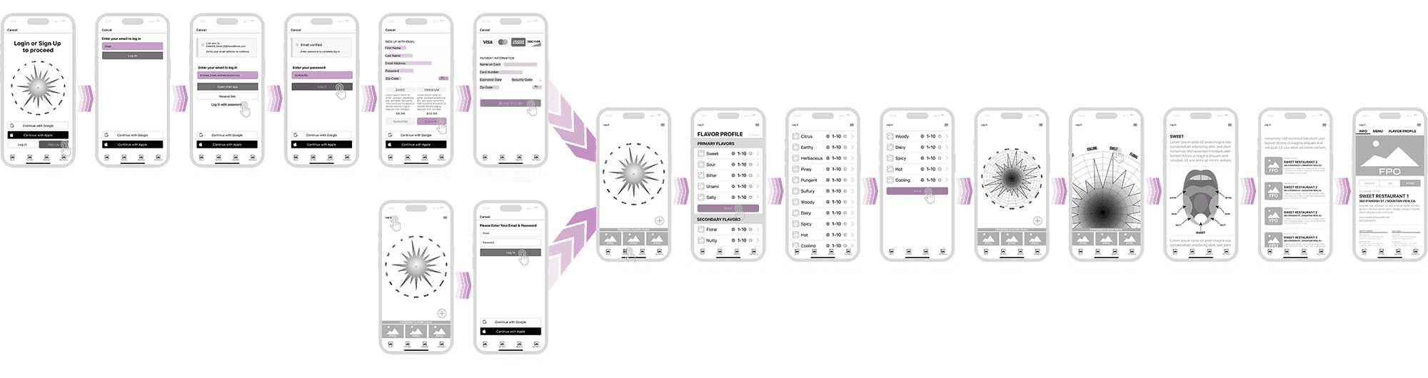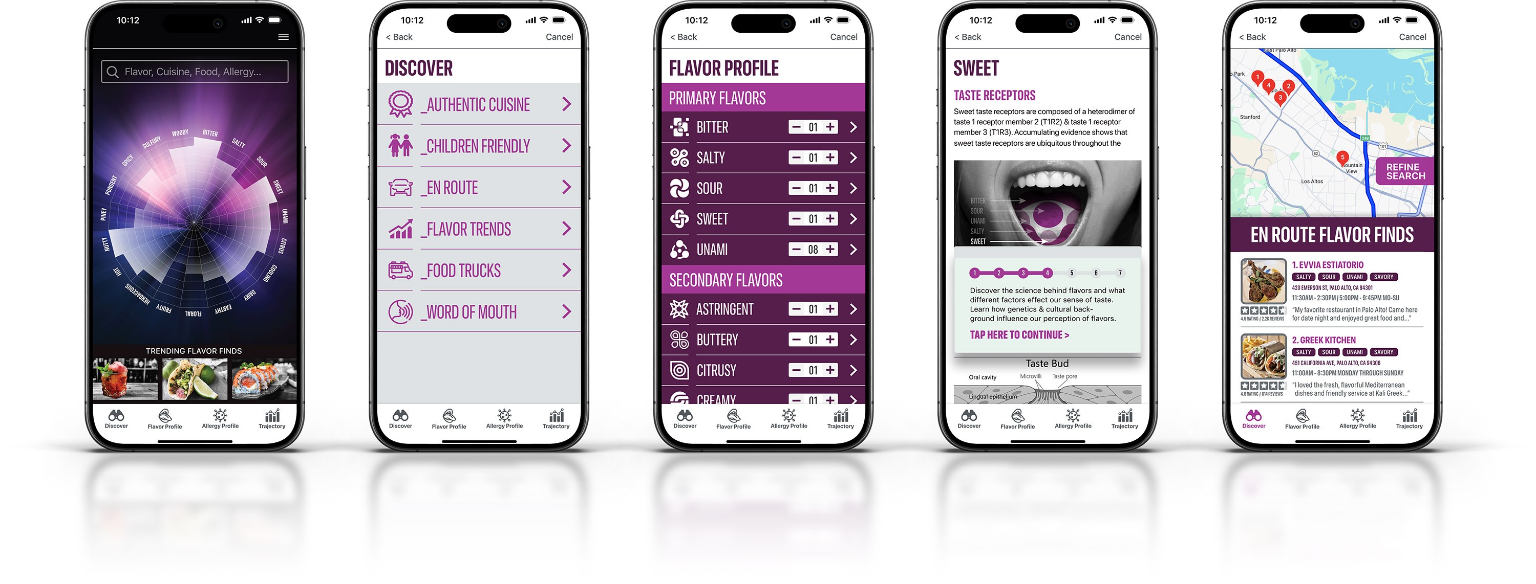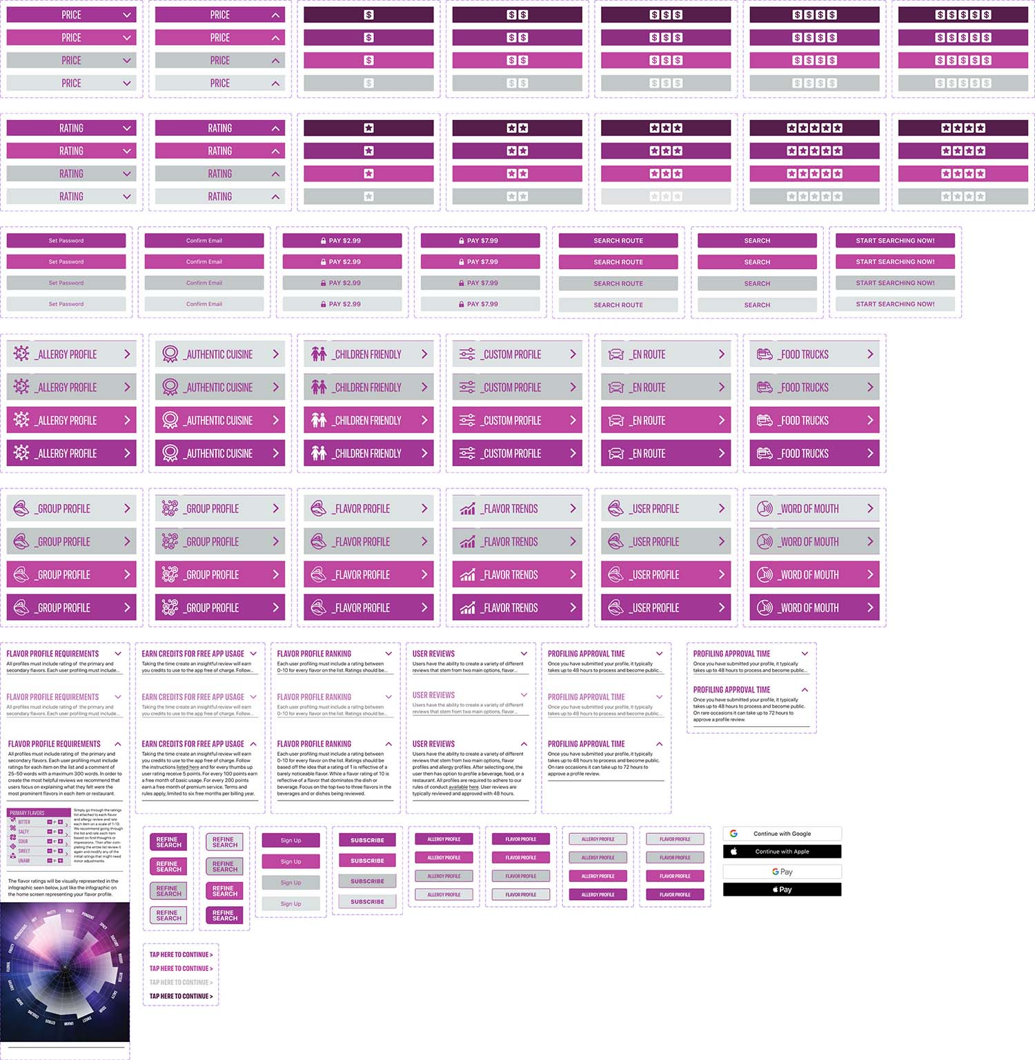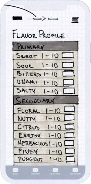 Designed to map each primary and secondary flavor allowing the user to view their profile at a glance on the home screen and when viewing a restaurants profile screen for a visual representation of its flavor profile.